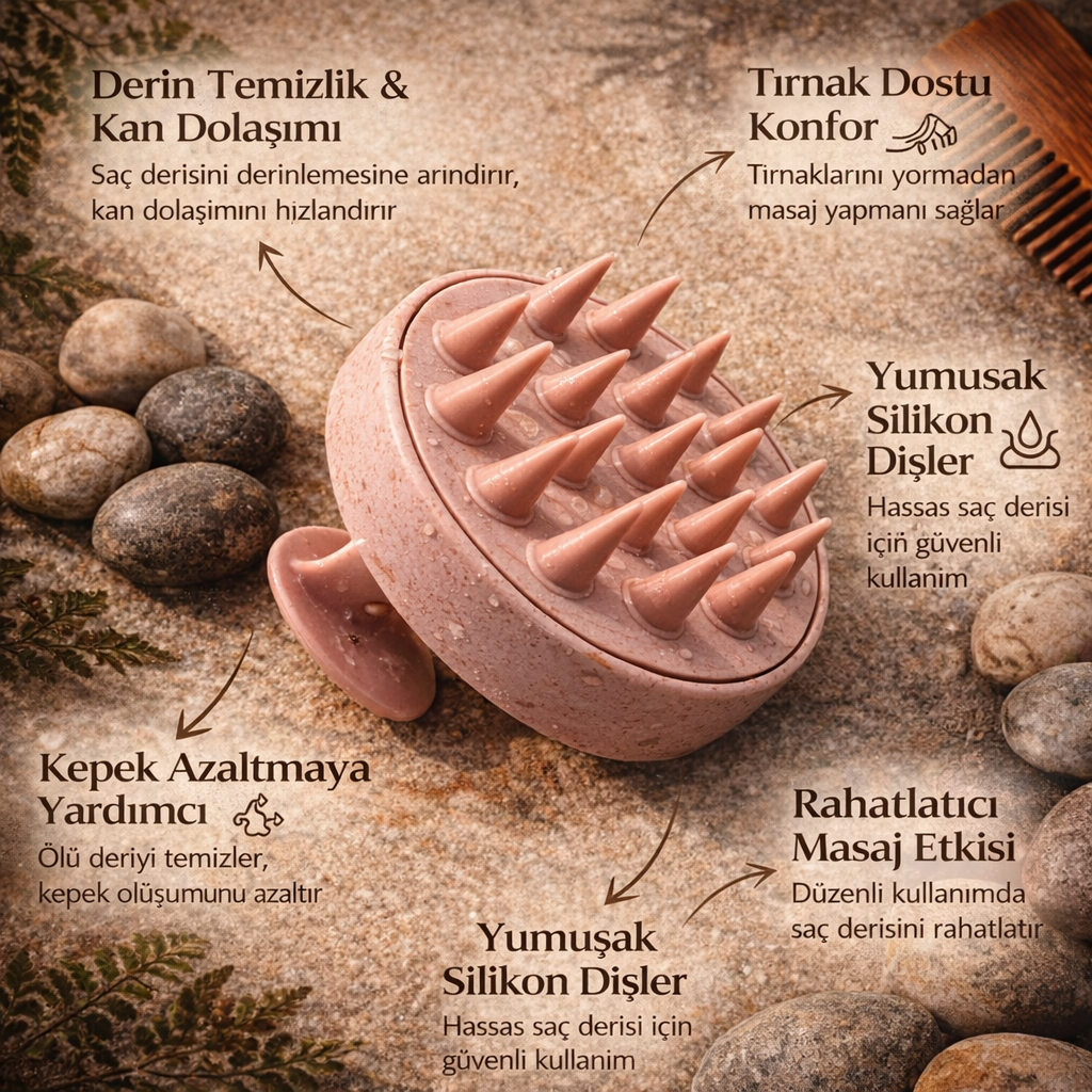 Land of Myth için özel olarak üretilen saç masaj fırçaları, yumuşak silikon dişlere sahiptir ve saç derisine zarar vermez.